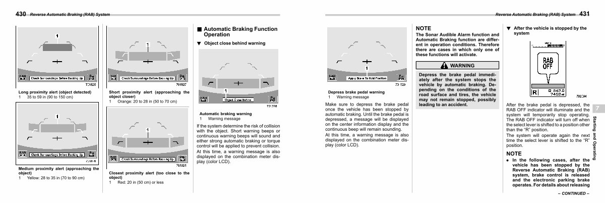 . In the following cases, after the vehicle has been stopped by the Reverse Automatic Braking( RAB) system, brake control is released and the electronic parking brake operates. For details about releasing