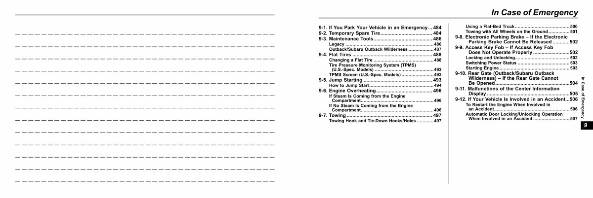 9-1. If You Park Your Vehicle in an Emergency... 484 s09