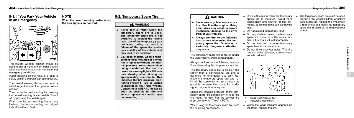 . Always conform to the following instructions when using the temporary spare tire. Otherwise, a seriously dangerous situation may occur.