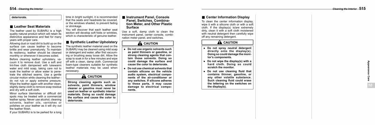 Cleaning the Interior 515
