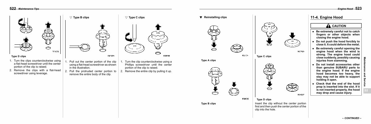 1. Pull out the center portion of the clip using a flat-head screwdriver as shown in the illustration.
