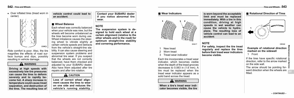 is worn beyond the acceptable limit and must be replaced immediately. With a tire in this condition, driving at high speeds in wet weather can cause the vehicle to hydroplane. The resulting loss of vehicle control can lead to an
