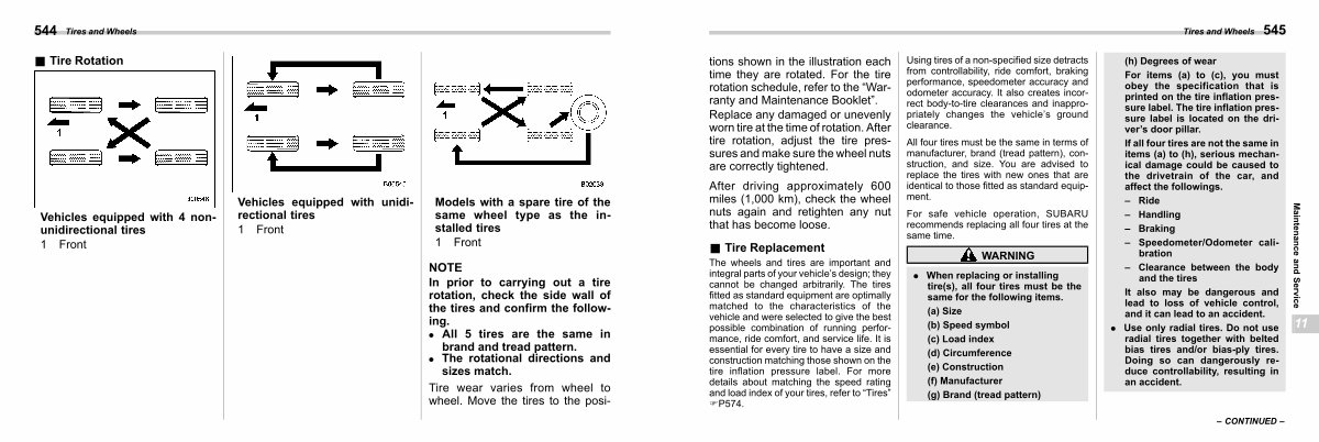 In prior to carrying out a tire rotation, check the side wall of the tires and confirm the following.