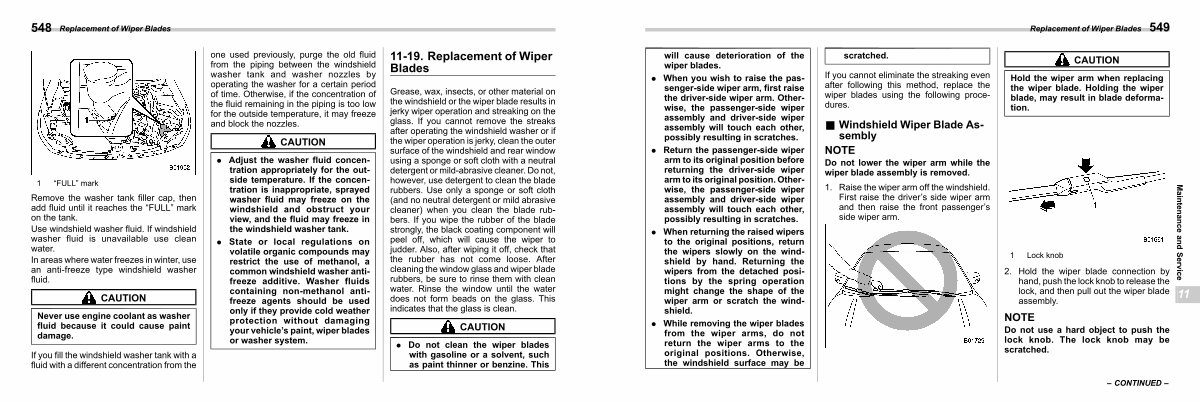 . Do not clean the wiper blades with gasoline or a solvent, such as paint thinner or benzine. This