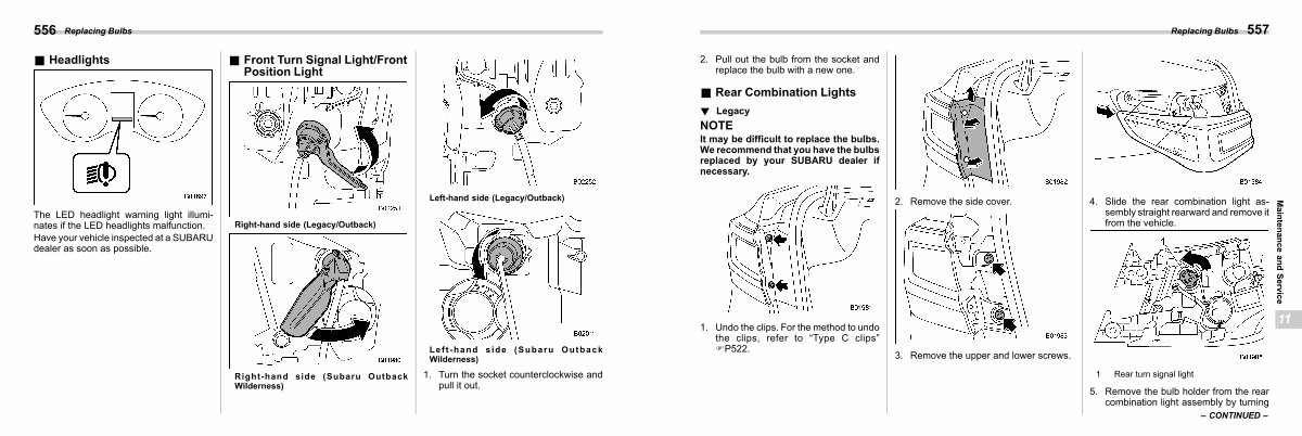 It may be difficult to replace the bulbs. We recommend that you have the bulbs replaced by your SUBARU dealer if necessary.