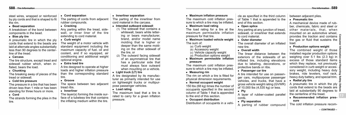 . Load rating The maximum load that a tire is rated to carry for a given inflation pressure.