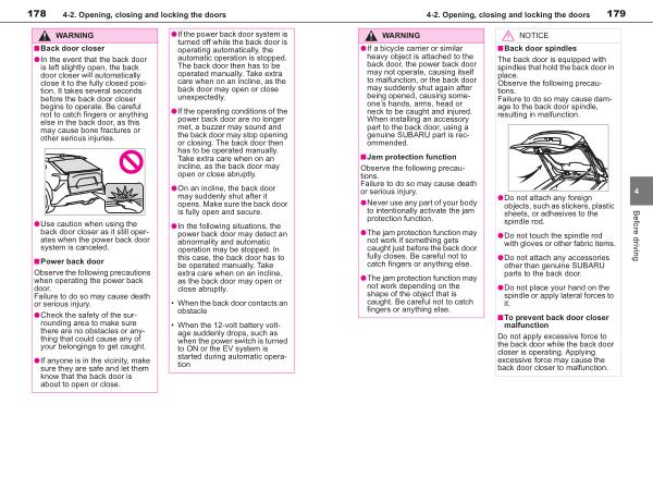 4-2 . Opening , closing and locking the doors