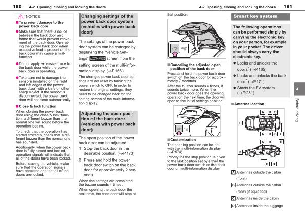 door or multi-information display . Antennas outside the cabin ( front ) Antennas outside the cabin ( rear ) ( if equipped ) Antennas inside the cabin Antennas inside the luggage