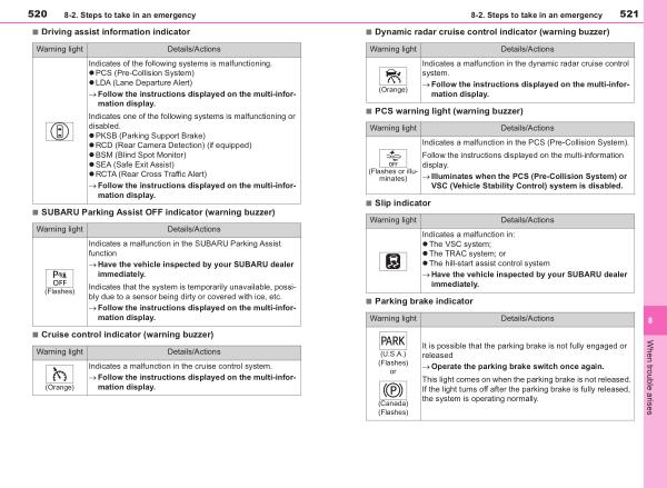Indicates a malfunction in the SUBARU Parking Assist function � Have the vehicle inspected by your SUBARU dealer immediately .