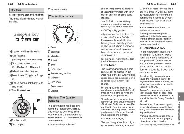 563 and / or prospective purchasers of SUBARU vehicles with information on uniform tire quality grading .
