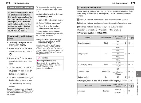 Your vehicle includes a variety of electronic features that can be personalized to suit your preferences . The settings of these features can be changed using the multi-information display , multimedia system , or at your SUBARU dealer .