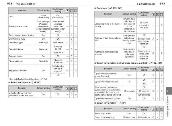 Audio system linked display On Off � O � Symmetrical AWD On Off � O � Drive Info Type After Start After Reset � O �