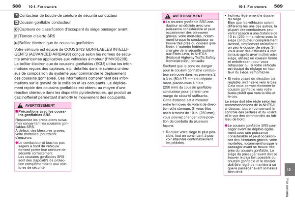 doivent porter leur ceinture de sécurité correctement . Les coussins gonflables SRS
