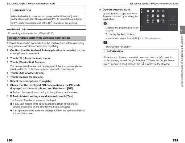 Android Auto can be connected to the multimedia system wirelessly using vehicle ' s wireless connection capability .