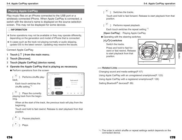 Related Links Changing sound and media settings ( P . 67 ) Using Apple CarPlay with an unregistered smartphone ( P . 123 ) Using Apple CarPlay with a registered smartphone ( P . 126 ) Setting Bluetooth ® devices ( P . 89 )