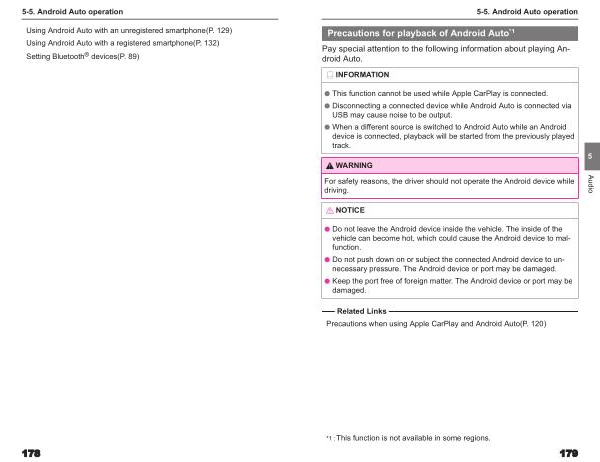 Related Links Precautions when using Apple CarPlay and Android Auto ( P . 120 )
