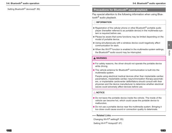 ● When the Wi-Fi ® function is enabled in the multimedia system settings , the Bluetooth ® audio sound may be interrupted .