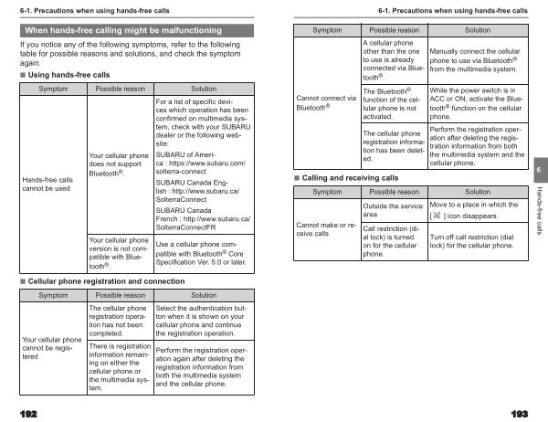 ■ Cellular phone registration and connection Symptom Possible reason Solution