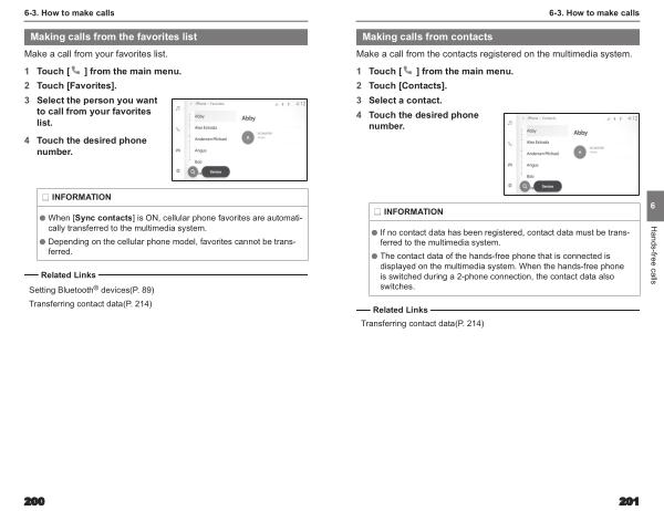Making calls from contacts Make a call from the contacts registered on the multimedia system .