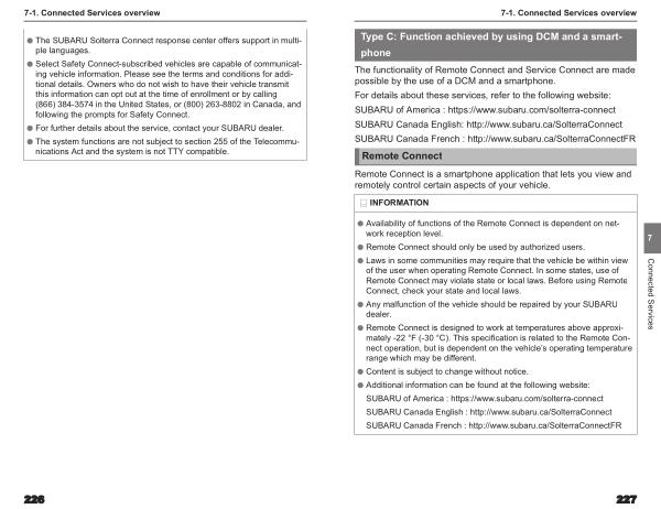 ● The SUBARU Solterra Connect response center offers support in multiple languages .