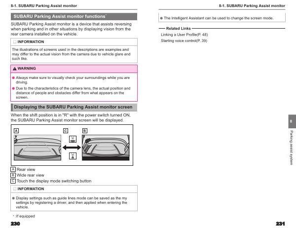 SUBARU Parking Assist monitor is a device that assists reversing when parking and in other situations by displaying vision from the rear camera installed on the vehicle .
