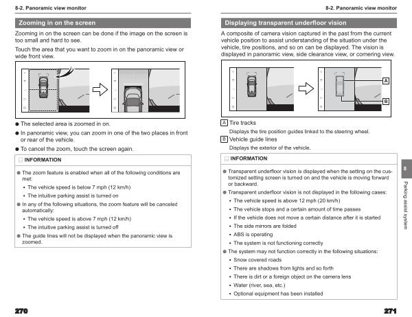 ● In panoramic view , you can zoom in one of the two places in front or rear of the vehicle .