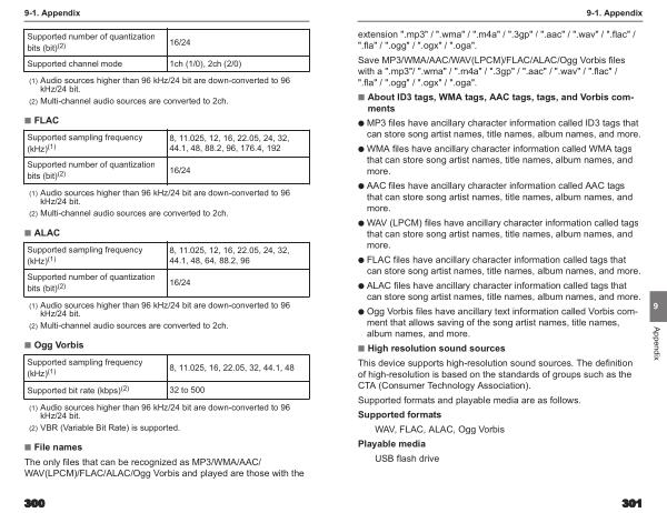 The only files that can be recognized as MP3 / WMA / AAC / WAV ( LPCM )/ FLAC / ALAC / Ogg Vorbis and played are those with the