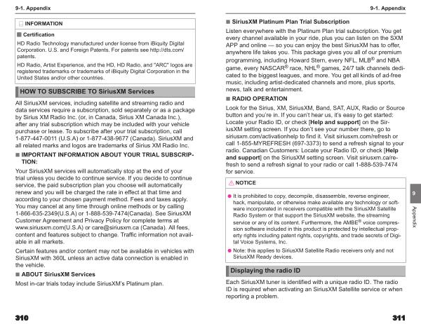 Listen everywhere with the Platinum Plan trial subscription . You get every channel available in your ride , plus you can listen on the SXM APP and online — so you can enjoy the best SiriusXM has to offer , anywhere life takes you . This package gives you all of our premium programming , including Howard Stern , every NFL , MLB ® and NBA game , every NASCAR ® race , NHL ® games , 24 / 7 talk channels dedicated to the biggest leagues , and more . You get all kinds of ad-free music , including artist-dedicated channels and more , plus sports , news , talk and entertainment .