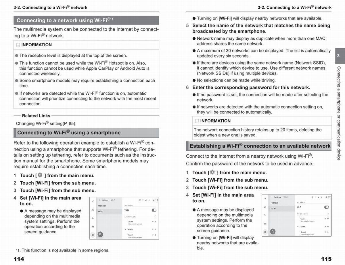 1 Touch [ ] from the main menu. 2 Touch [ Wi-Fi ] from the sub menu. 3 Touch [ Wi-Fi ] from the sub menu.