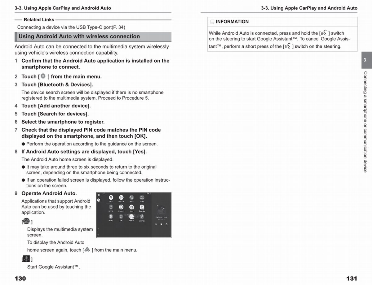 Android Auto can be connected to the multimedia system wirelessly using vehicle ' s wireless connection capability.