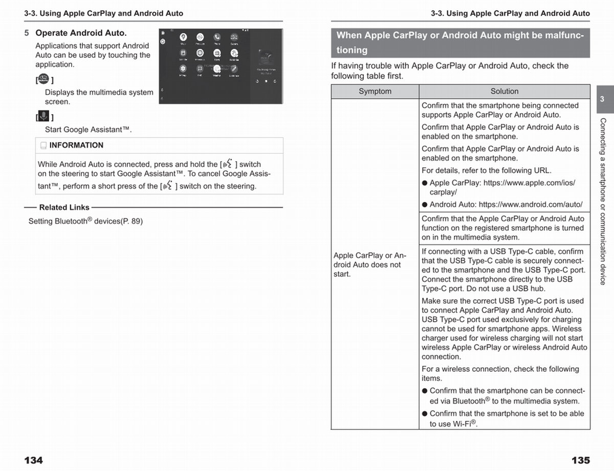 While Android Auto is connected, press and hold the [ ] switch on the steering to start Google Assistant™. To cancel Google Assistant™, perform a short press of the [ ] switch on the steering.