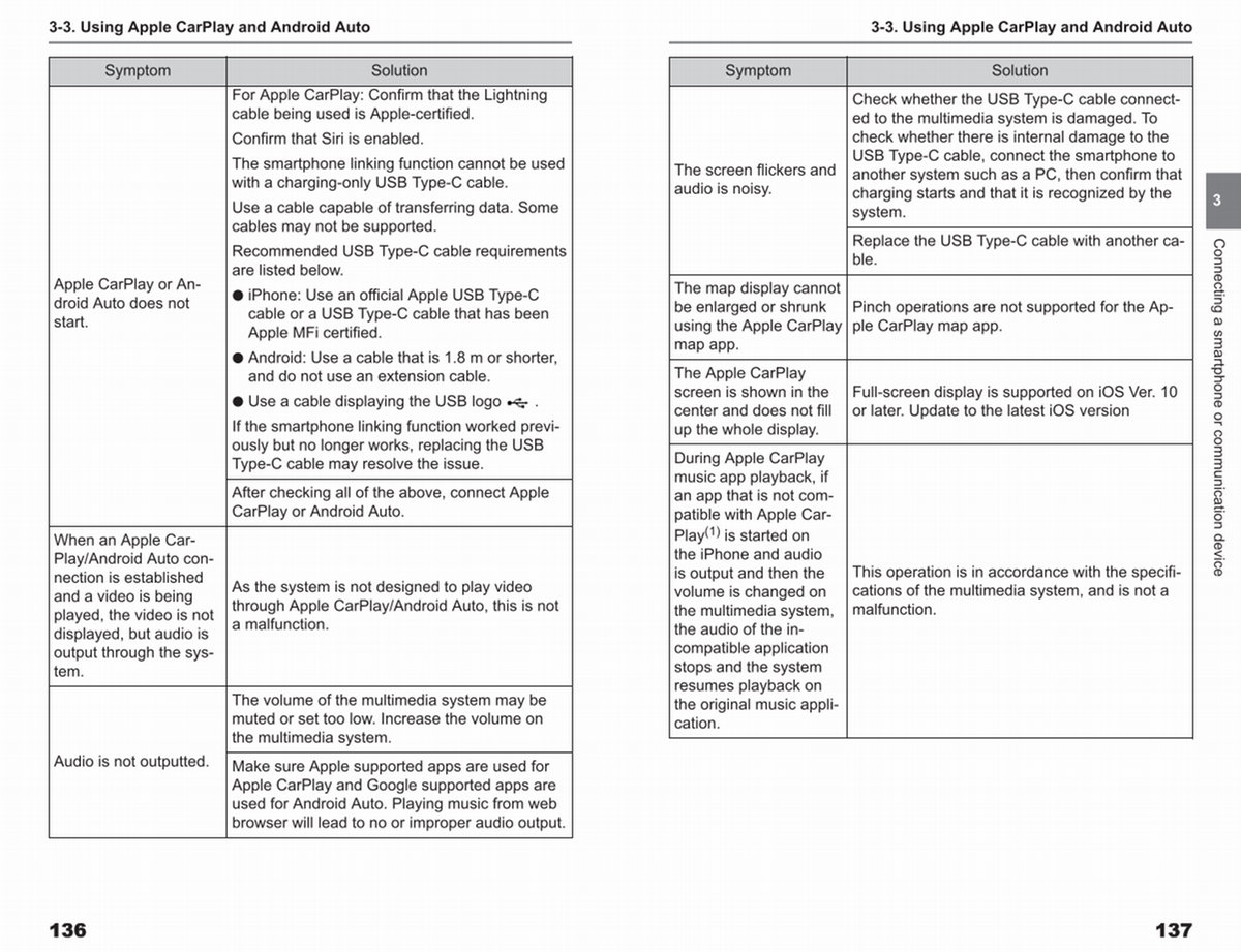 For Apple CarPlay: Confirm that the Lightning cable being used is Apple-certified.