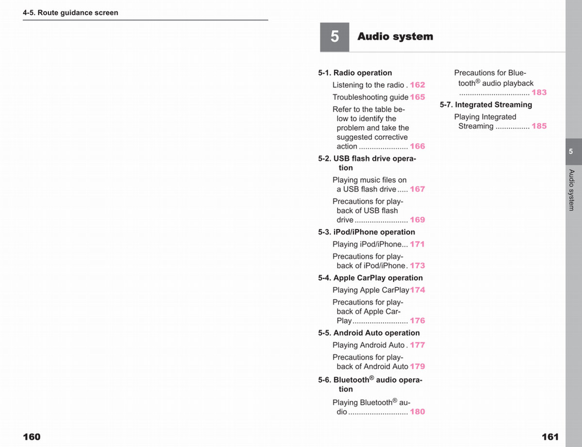 5-1. Radio operation Listening to the radio. 162 Troubleshooting guide 165