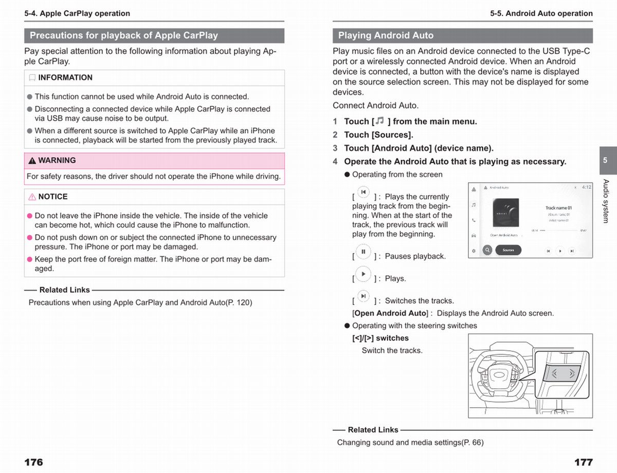 Related Links Precautions when using Apple CarPlay and Android Auto( P. 120)