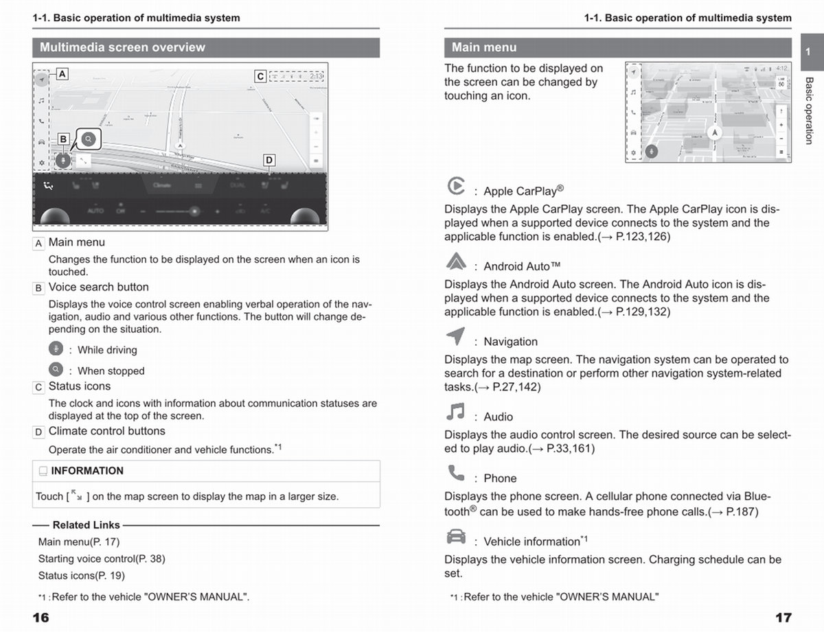 Related Links Main menu( P. 17) Starting voice control( P. 38) Status icons( P. 19)