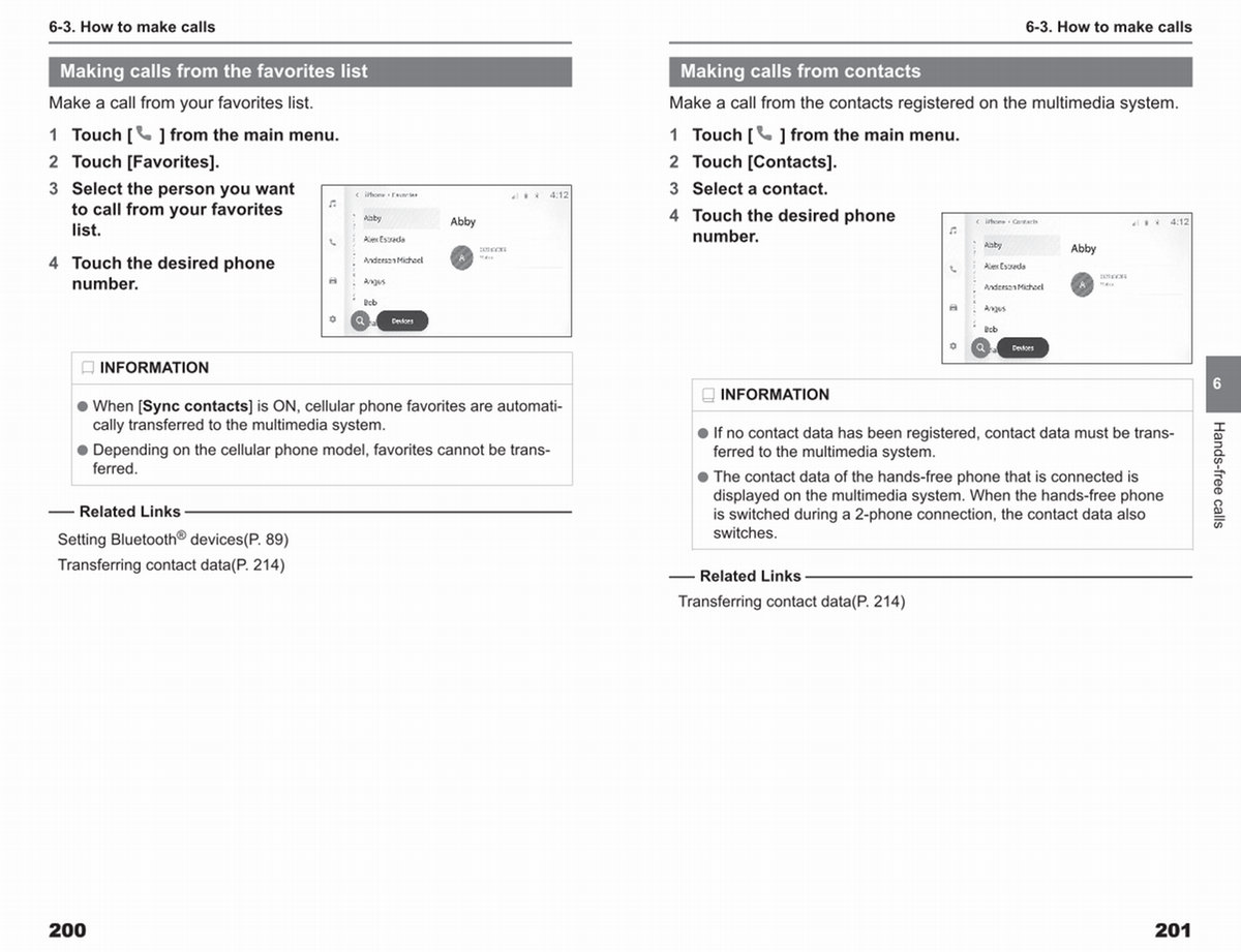 Making calls from contacts Make a call from the contacts registered on the multimedia system.
