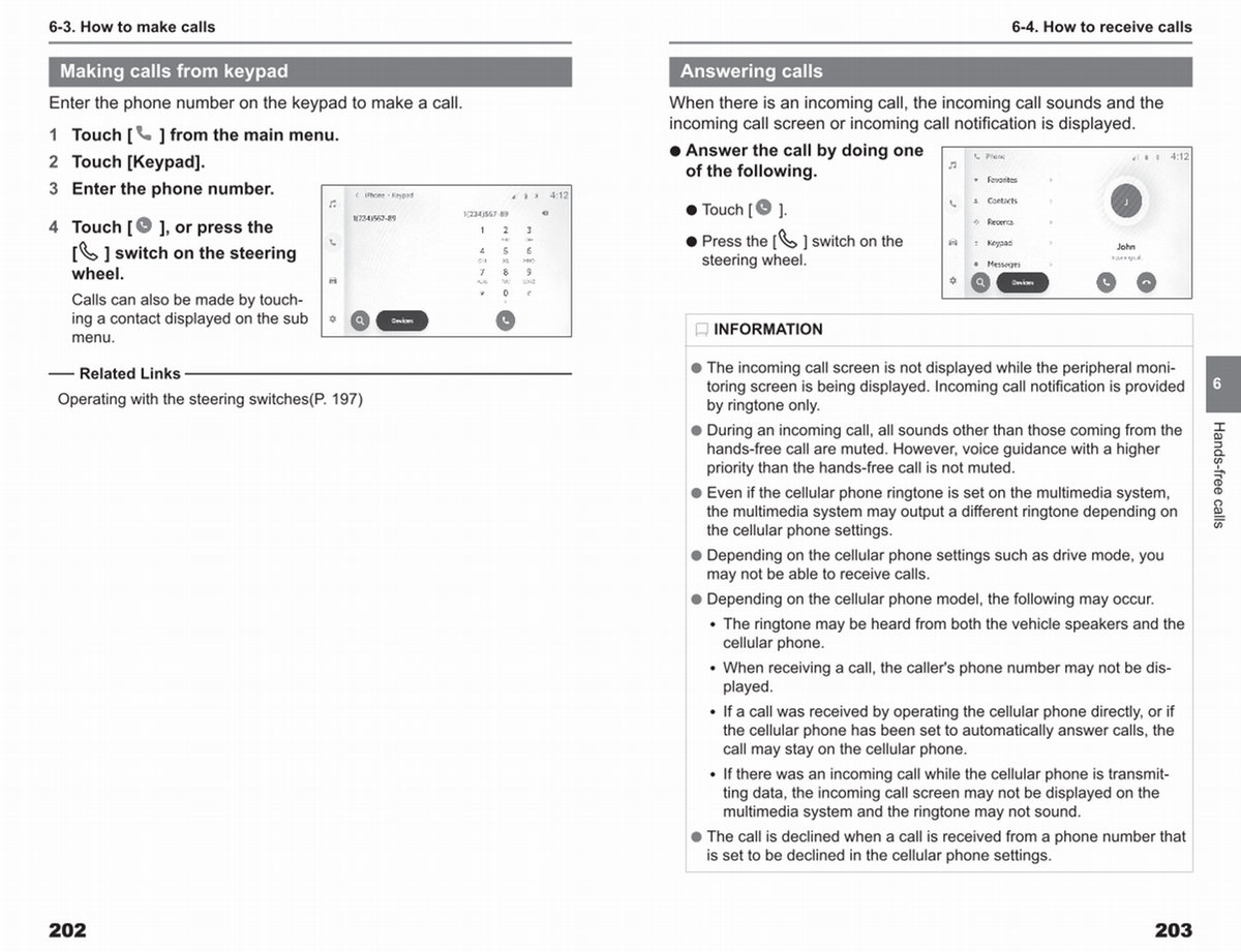 • If there was an incoming call while the cellular phone is transmitting data, the incoming call screen may not be displayed on the multimedia system and the ringtone may not sound.