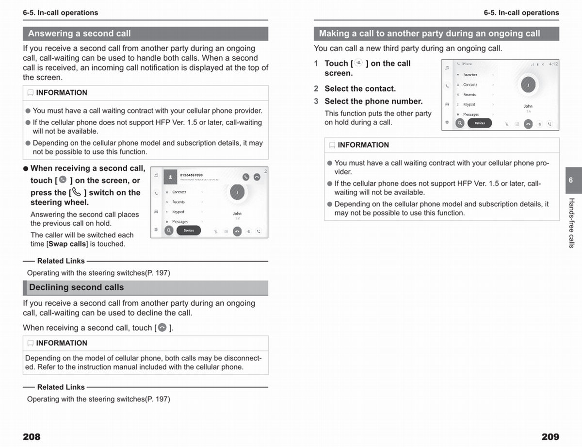 ● If the cellular phone does not support HFP Ver. 1.5 or later, callwaiting will not be available.
