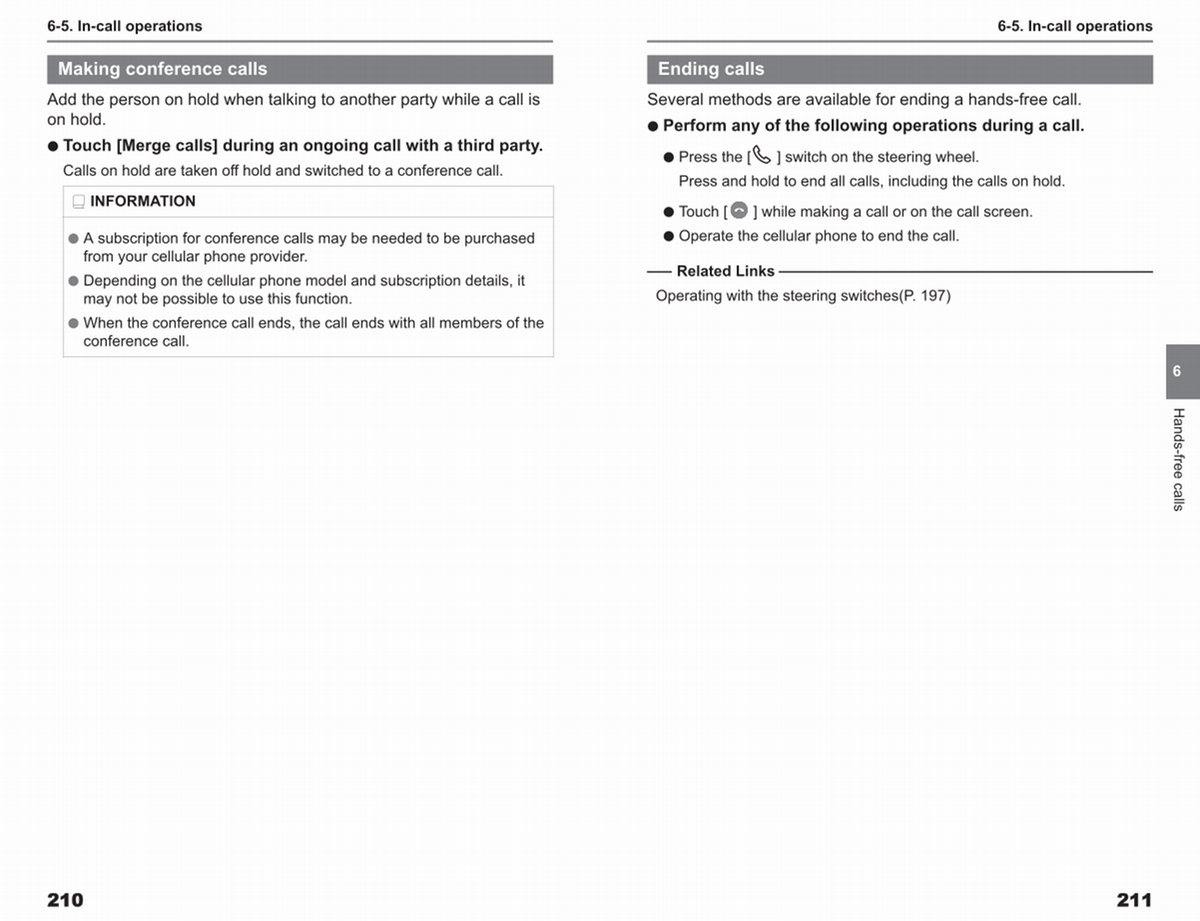 ● Touch [ Merge calls ] during an ongoing call with a third party. Calls on hold are taken off hold and switched to a conference call.