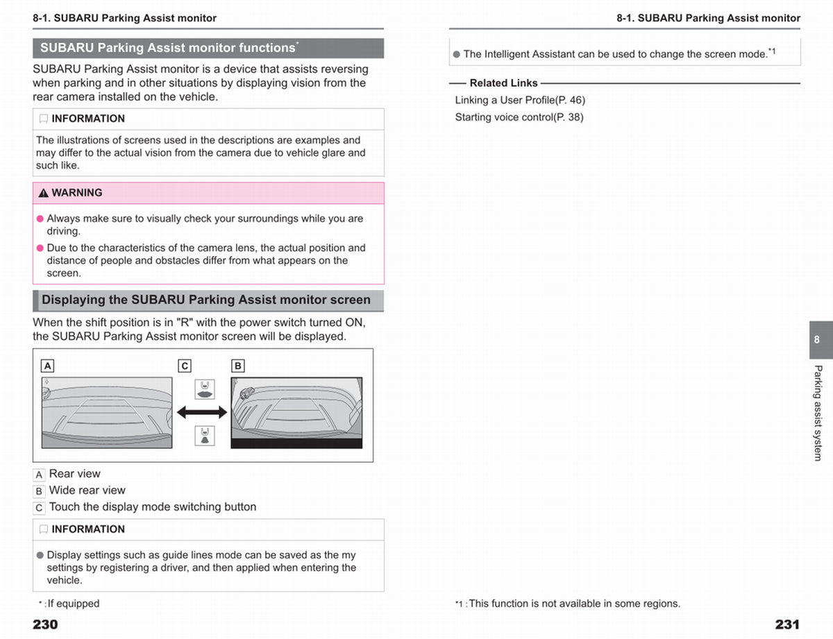 8-1. SUBARU Parking Assist monitor