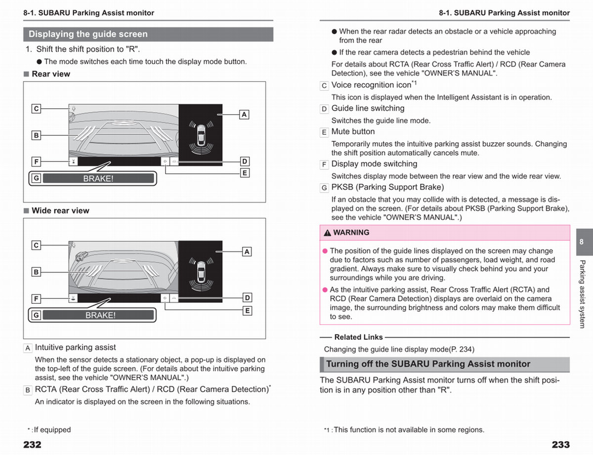 B RCTA( Rear Cross Traffic Alert) / RCD( Rear Camera Detection) * An indicator is displayed on the screen in the following situations.