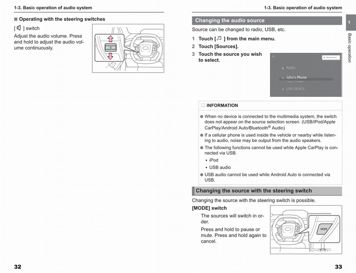 1-3. Basic operation of audio system