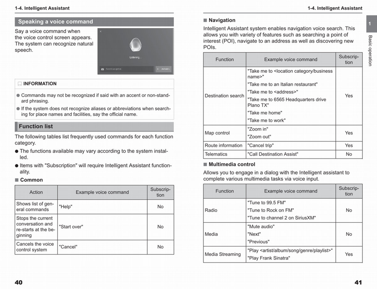 Intelligent Assistant system enables navigation voice search. This allows you with variety of features such as searching a point of interest( POI), navigate to an address as well as discovering new POIs.