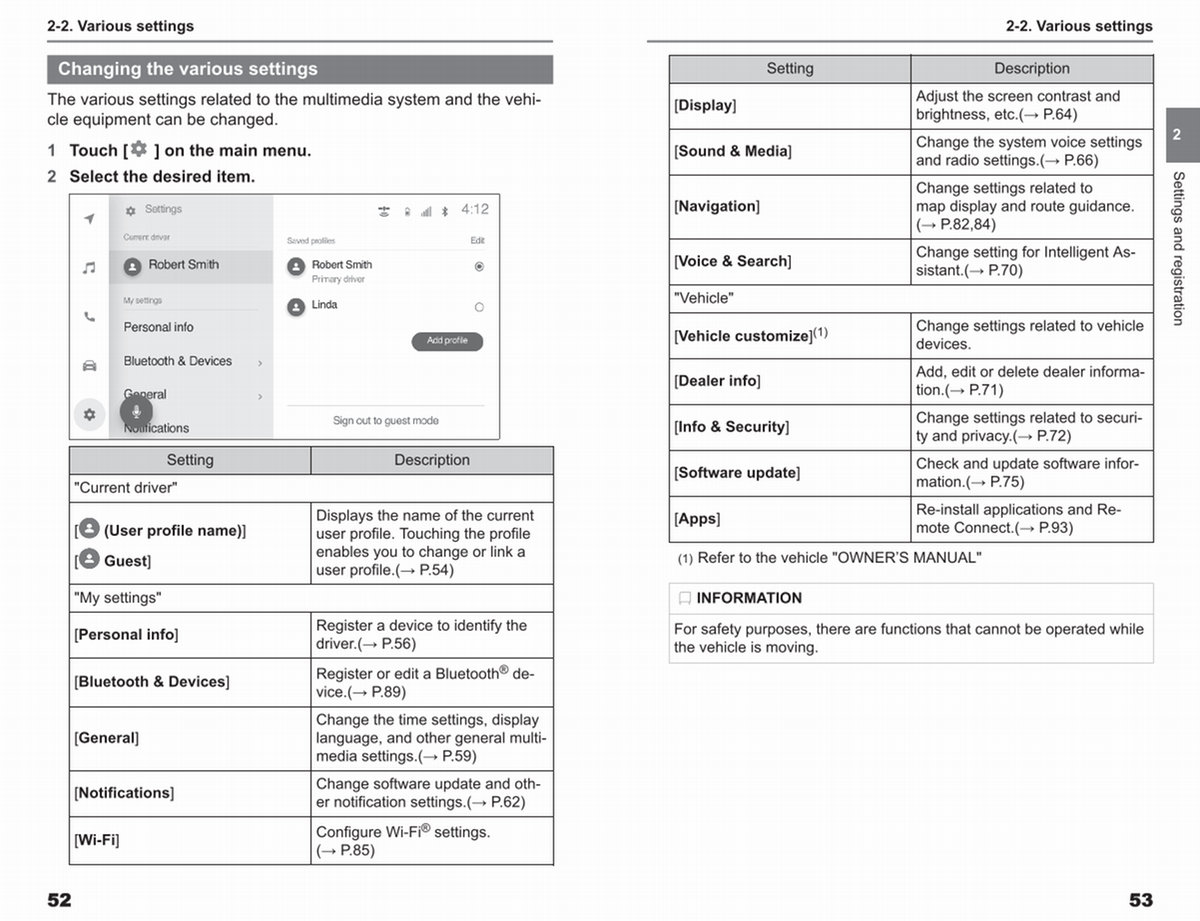 Change the time settings, display language, and other general multimedia settings.( → P. 59)