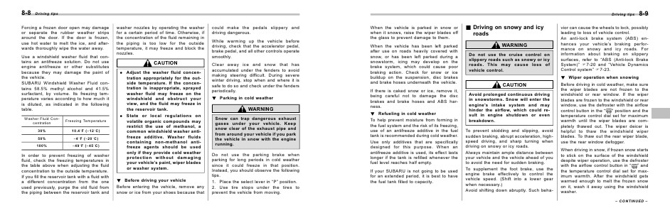 SUBARU Windshield Washer Fluid contains 58.5% methyl alcohol and 41.5%