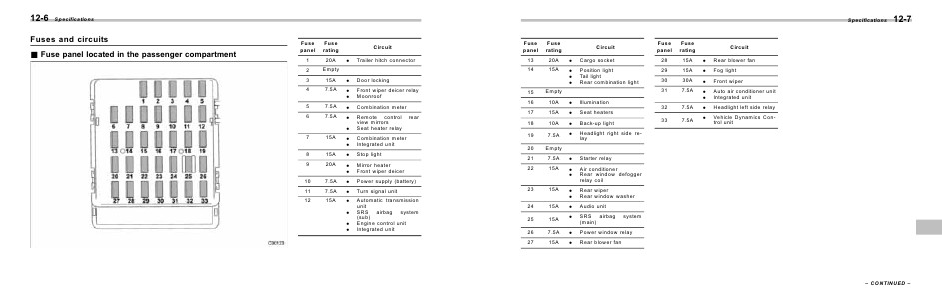 & Fuse panel located in the passenger compartment