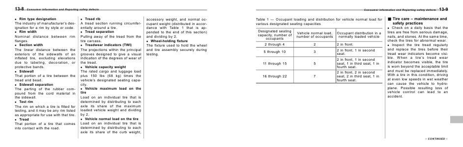 Table 1 — Occupant loading and distribution for vehicle normal load for