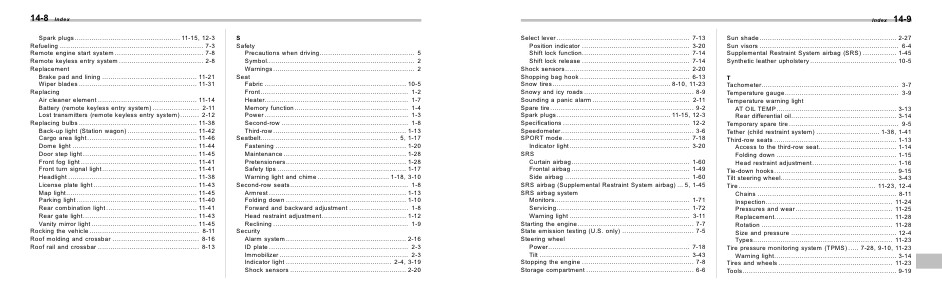 Spark plugs...................................................... 11-15, 12-3