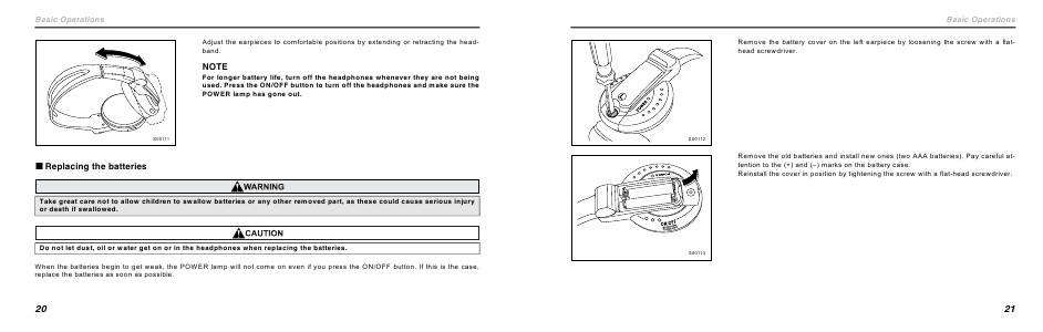 Do not let dust, oil or water get on or in the headphones when replacing the batteries.