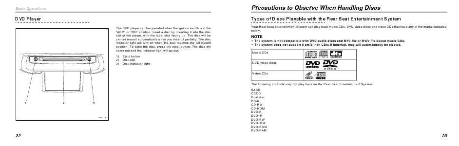 “ACC” or “ON” position. Load a disc by inserting it into the disc